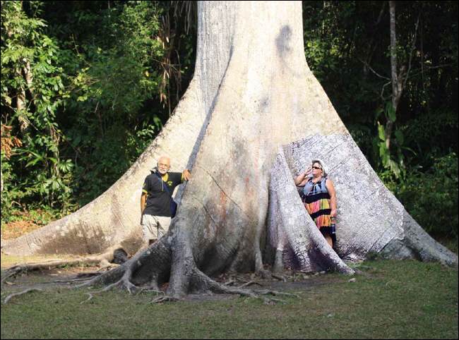 Hier seht Ihr die riesige Ceiba, den heiligen Baum der Mayas, der wohl jeden Besucher zu einem Vergleichsfoto animiert – wer ist groesser, der Baum oder ich?