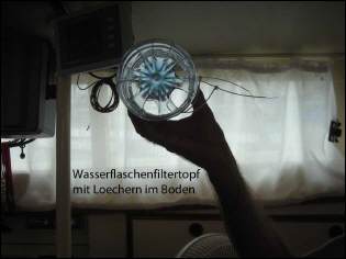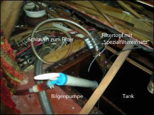 Klein heisst in diesem Fall, er muss einen Blick in den Dieseltank werfen. Wilfried verdaechtigt ihn, Dreck oder Algen zu beherbergen und die muessen dann raus. Gar nicht klein ist das Problem, da der Tank im Salon unter einer einzigen grossen Bodenplatte versteckt ist. Um hinein zu schauen, muss erst die Platte zersaegt werden. |